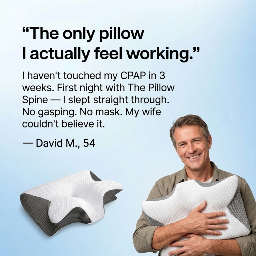 I was diagnosed with sleep apnea 2 years ago. My CPAP was collecting dust after 3 months — I just couldn't sleep with that mask on. Found The Pillow Spine and honestly didn't expect much. First night, I slept through. No gasping. My wife couldn't believe it.