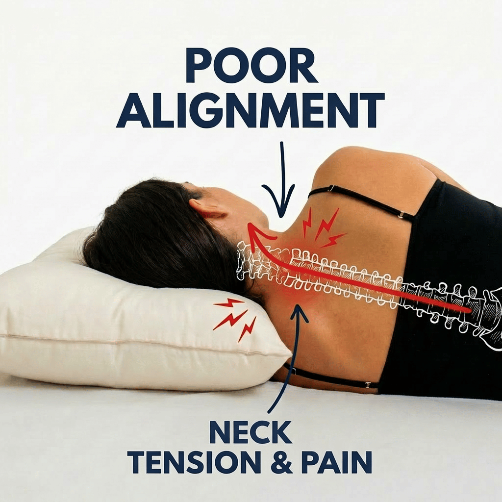 Most pillows support your head not your neck. That gap forces your cervical spine into an unnatural curve all night long, creating the tension, stiffness, and pain you wake up with every morning. It's not age. It's not bad luck. It's misalignment and it's completely fixable.
