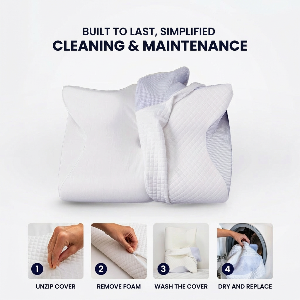 SleepEase™'s Orthopedic Curve cradles your neck and keeps your cervical spine in perfect alignment from the moment you close your eyes to the moment you wake up. No tension. No compensation. No pain. Just your body finally resting the way it was designed to.